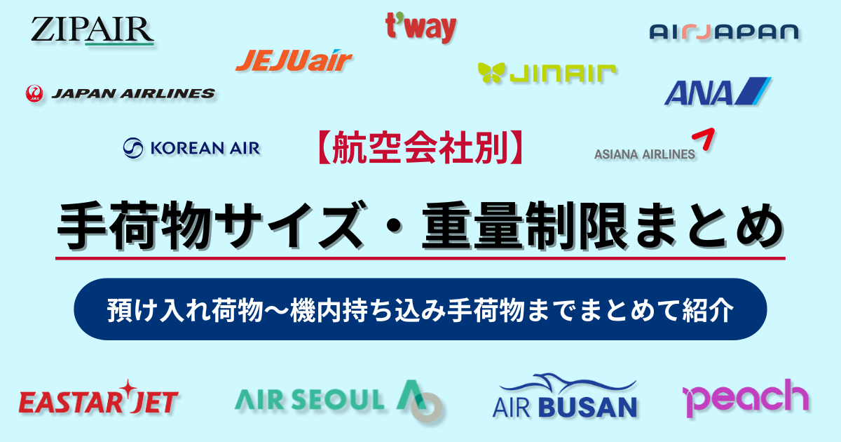 【韓国旅行】航空会社別の手荷物サイズ・重量制限まとめ【2026年版】預け入れから機内持ち込みまで紹介